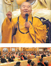 星雲大師於台北道場為首場生耕致富講座,主講「搶救地球」。現場有心培和尚、吳伯雄、陳文茜、趙麗雲、柴松林、簡志忠、高希均等三千名聽眾。人間社記者陳秋玉攝