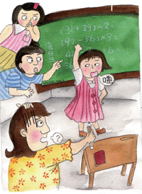 這一天,老師在黑板寫了六個數學題目,然後開始點同學上台作答,「小志、小娟、小明、妞妞-」突然聽到一聲「嗟-你真討厭耶!」糟糕!這真是一句突兀又尷尬的話,老師驚訝的表情讓妞妞嚇呆了,老師問:「妳剛剛說什麼?」