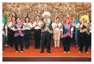 而香港知名歌手鄺美雲,演唱「東方之摩尼寶珠」,歌聲宛如黃鶯出谷,博得全場掌聲不斷,安可聲連連。此外,泰國曼谷協會、新加坡協會以及中華總會北區、中區、南區等三個協會,分別獻出精采的演唱,與現場大眾互動交流。