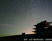 假如不考慮白天那顆超亮的太陽,在完全無光害的情況下正常的視力可以看到天空中的星星約七千顆,但因為同一個時間只能看到半個天球,有一半是在腳底下的另一半天空,如果再扣除地平線附近不易見之星體,就僅剩下三千顆左右,最近因工業發達空氣汙染,人口聚集的都市燈光太亮光害污染,使得可以看到的星星數目就更少了。(見圖四、光害下嘉峪關的星空)(張添嵀攝)