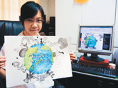 陳品融說,去年暑假參加iEARN(台灣國際教育資源網)繪本專案製作,她和姊姊一起討論全球暖化與關懷地球等議題,去年八八水災的慘況,更讓她深刻瞭解大自然的反撲力量,有感而發創作一系列繪圖。