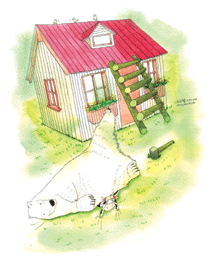 「碰!」一個不留心,大熊先生從屋頂上滑下來,乳牛小姐閃躲不及,硬生生的被壓倒在地,這下子,屋子不但沒修好,兩人還全進了醫院……。