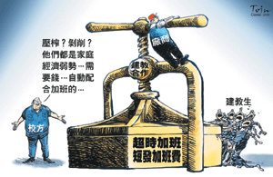 而且,這所學校輪調班組長在接受媒體採訪時,還表示「建教班的學生本身就是家庭經濟比較弱勢,他需要錢嘛,(所以)願意主動配合公司加班」,難道人窮就該被剝削?