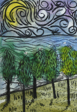 藝術家梵谷的創作為什麼能觸動人心呢?從〈星空下的絲柏路〉這幅作品就能看出端倪,他利用一筆接著一筆的線條鋪排成面,把大自然的景色形象化,不僅僅是畫線條而已,更賦予線條強烈的生命力與情感,進一步把藝術家的堅持與意志力,切切實實地融入到自然之中,這次藉由梵谷,APPLE老師除了帶領我們認識線條的深淺、方向、密度與結構之外,更從繪畫過程中,體會出線條的性格與力量。