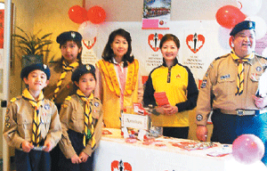 為融入加拿大當地社區、落實佛法本土化,溫哥華協會固定每年六月發動會員,共同為「心臟中風基金會」籌款,今年於四日在溫哥華佛光山門口募款,除了承辦的列二與淨華分會外,佛光童軍團旅長關志強(右)更帶領六名童軍、二位家長,協助派發DM,為募款奉獻己力。住持妙牧法師表示,佛光童軍平日學習各項知識與技能,藉由付出獲得快樂,學會幫助別人,並讓他們落實所學,與大眾結緣。