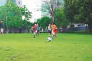 拍攝團隊一大清早在公園裡,拍攝一群小朋友開心踢球的畫面,簡單的幾個鏡頭,就花費了好幾個小時。人間社記者蘇莉萍攝