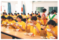 圖說:佛光會員吃過堂飯,體驗叢林生活。人間社記者梅小青攝