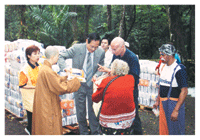 圖說:福斯市議長Budel(右二)、中華民國駐巴拉圭東方市總領事陳家駿(左三)參與救濟物品發放。人間社記者連元章攝