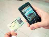 謝哲人表示,以車票為例,若在終點台北站的車票印上行動條碼後,使用能上網的照像手機,拍攝條碼後即可連結上網,擷取台北車站周遭商店旅館、景點小吃、轉乘工具、旅遊地圖等各種資訊,可完全取代旅遊手冊、地圖,速度快又方便,很適合大眾交通運輸業使用。(聯合報記者周宗禎攝)