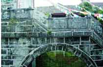 漢時官兵進犯大理,觀音大士化作老婦,用草索背著一塊大石頭在路上與敵兵相遇,入侵士兵看見了,覺得非常驚訝,心想:這裡的老婦竟然會有這麼大的力氣,更何況是青壯年呢?於是,敵兵不敢再犯,鳴金收兵。這就是著名的「負石阻兵」的傳說。(圖:觀音塘──橋映水魚)