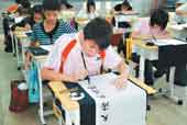 參加第十屆三好佛光盃書法比賽的小朋友,專注書寫星雲大師的智慧語錄。人間社記者林瑤霖攝