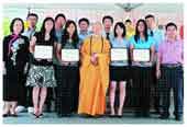 優秀學子獲佛光獎學金,與紐約道場住持覺泉法師(前排中)合影。人間社記者許振輝攝