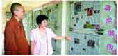 台南市延平國中校長胡惠(右),向南台別院住持妙勤法師介紹校園的人間福報閱讀牆,鼓勵學生閱讀後簽名,並給予獎勵。人間社記者妙紀攝