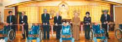 東京佛光山住持覺用法師(右三)及東京板橋區社會福祉協議會的貴貴,一同為輪椅捐贈儀式剪綵。人間社記者張素娥攝