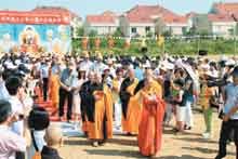 巴黎佛光山二十七日動工,由佛光山歐洲總住持滿謙法師(前)主持灑淨祈福典禮。人間社記者劉傑攝