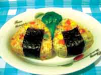 五、做好的鮭魚飯我都會用點巧思,以模型做變化成鮭魚飯糰,增加孩子食欲。