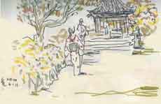 我們一行十七個人的旅行寫生,落到清水寺即刻走散,各覓立足之點開始繪畫。