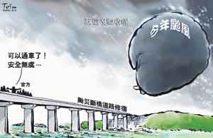 官員雖拍胸脯 部分山區重建道路 年復一年坍崩 攸關生命財產 勿急於通車 忽略安全