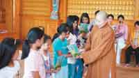 最後妙訓法師、俞才安、葉少芬頒發各班前三名獎狀、獎品,學校還設立進步獎和全勤獎,鼓勵他們再接再厲,更上一層樓。