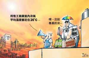 三、除了限制營業場所室溫,也應鼓勵民眾在用電尖峰時刻,前往附近的社區活動中心、圖書館、游泳池、租書店、咖啡店等場所,共用中央空調,以降低住家冷氣使用,也就是宏觀控管夏季用電,會比營業場所限溫更能節能減碳。