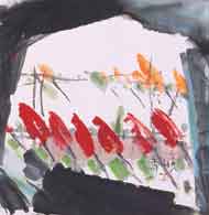 兩星期後的早上,兩片半圓的葉片冒出來了。小小的兩片葉,像面對面相望的胖小子,笑呵呵地在晨曦中微微搖擺著身子。我也像個傻子一般愣愣地笑著。呵!真不容易!要和這個充滿陽光的日子見一面,可真不容易!我情不自禁給這兩片小葉子大力拍拍手。