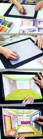 《藝術現場》認識透視線 文/劉冠綸 圖/牙米兒童美術 |2010.07.14 語音朗讀 1254觀看次 字級 大 中 小 每個孩子都夢想擁有自己的房間,裡頭擺滿喜歡的娃娃、玩具,或將祕密偷偷藏在某個角落,孩子是這空間裡的國王,隨心所欲、自由自在。這次的教學,APPLE老師要和大家一同創造夢想王國,將想法轉化成畫面。你可以利用網路找些室內設計的照片,或以家裡的房間作為參考資料,激發一下靈感的發想,甚至天馬行空的想像,設計出獨一無二的家具與擺飾喔! 使用媒材:描圖紙、蠟筆、黑色書面紙、金漆筆。 圖說 1.第一次以描圖紙作畫,是不是感覺很新鮮呢?描圖紙的紙質比較薄,畫畫時一手要壓著紙,不要讓描圖紙滑來滑去,以免變得皺皺的。2.選擇一支淺色的蠟筆打稿,畫一個方形作為牆面,接著以方形的四個角為起點,畫出四條放射狀的直線,這樣一來,天花板、地板及三個牆壁就出現囉!3.天花板、地板及牆壁,可以做些顏色的搭配,或自行設計夢想中的房間風格,女孩子喜歡甜美的感覺,可以畫上粉嫩的色系;男孩子要酷酷的房間風格,可以藍色或冷色調為主。4.最後,在這空間裡擺上家具,APPLE老師畫上一張軟軟的床墊、一盞明亮的吊燈……,你呢?你想在你的房間裡擺上什麼呢?黃致豪(光華國小二年十班)翁祥鈞(光華國小一年三班)陳盈嘉(丹鳳國小三年九班) 前一篇文章 《記憶猶新》童年趣事 下一篇文章 《三句學英文》mood 熱門新聞 01全中運張雅佳游泳 3 金 雙破全國2026.04.2402【詩】 鐮刀俠2026.04.2103佛光山開山60周年 傳授三壇大戒2026.04.2004人情冷暖與計算 悅讀〈 杜十娘怒沉百寶箱 〉2026.04.21052026地球日 行動永續綠色未來 2026.04.2206永和學舍慶佛誕 千人浴佛清淨身心2026.04.2207【走讀城鄉】淡水市街清代三合院─施家古厝2026.04.2408嘉義.朴子 樸城煙霞古韻長 水道遺風話滄桑2026.04.2009火金姑復育有成 螢光爆發2026.04.2110衣服晾乾變硬 微觀祕密 2026.04.22 訂閱電子報 台北市 天氣預報 台灣一週天氣預報 相關報導 【快樂塗鴉簿】晚霞【新詩大解密】羅青〈長頸鹿小飛魚〉【快樂塗鴉簿】快樂學習【原民說故事】比馬更快的追鹿人(下)【快樂塗鴉簿】五彩繽紛的海底世界【陳老師說好故事】衛懿好鶴(下)