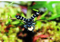 這天我來到苗栗南庄的山區,遠遠的就看到一隻星天牛停在樹枝上,走近一看,奇怪!牠身上的花紋真怪,不是白點狀,而是有點淡淡的藍紫色,呈現帶狀的斑紋,當下也沒多想,就拍了幾張照片回來,請教好友周天牛。周兄一看到照片馬上興奮的說:這是數量不多的種類,這種天牛的生態習性不明,要觀察到不容易,之前本種也常常被誤稱為大衛星天牛,但是在周兄找到當年發表的文獻後,才知道牠的正確名稱是霧社星天牛,也因為如此,我們順利的了解牠的生態,原來牠們會在特定的樹種上活動,只要掌握好季節時間,您就有機會一親芳澤。