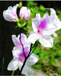 競相綻放、生機勃勃的花兒,成了屋裡的焦點。每日,家人從紅塵裡歸來,朋友們登門造訪,總要圍著花兒,品味一番。那芬芳的花兒,似乎讓凡俗的話題和每人的目光也柔和起來了。一位朋友指著那株花王———朱紅色似綢緞般的杜鵑,誇她性靈、豐盈、濕潤和富足,傳統刺繡中金絲絨織就的「花」、「鳥」圖樣,那能和她比呢?小女兒就噘起嘴來,嘰嘰喳喳地讚歎那株比利時杜鵑,像自己的小朋友,粉紅得天真,花瓣上散落滿白色的小星星,白色的花邊像粉裙美麗的白裙邊。花心裡伸出的兩條細柔捲鬚,在風中一顫一顫,像兩隻小手在風中揮舞。