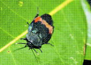 這時,阿凱告訴我:「有隻很美的蟑螂喔!」我心想:「哪有什麼蟑螂是『很美的』?」轉頭過去一看,這哪是蟑螂,這是一隻很美的甲蟲吧?在陽光下身體泛著寶藍色深遽的光澤,還有美麗的橘色帶狀斑紋,正低著頭在吸食著甘美的泉水,心中再次響起一個聲音:「多美的一隻蟑螂啊!」