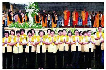 「宗教聯合追思法會」在佛光山萬年寺誦經祈福超薦法會中揭開序幕,心定和尚帶領法師、佛光人梵唄聲攝受全場與會大眾。心定和尚以英文恭讀佛光山開山星雲大師所著〈為康泰旅遊挾持事件罹難者祈願文〉,請求佛陀庇佑劫後餘生的人們,賜給他們再生的信心,讓他們知道:活著就有希望