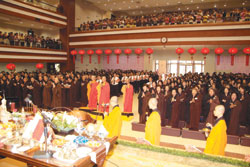 中區供僧道糧回向法會由主法和尚慧法、慧誠、慧印法師領眾,與會大眾誠摯啟請十方法界眾生,依據瑜伽燄口儀軌虔誠禮拜、念誦,祈求冥陽兩利。