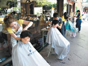八十五歲的梅銀很開心地讓這些年輕人剪髮,她讚歎這群設計師已經在行「三好」了,希望透過此次的義剪活動能進一步接引他們學佛。