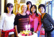 黃筱蓁(右一)與娘家人合影,由左至右依序是三姊、媽媽、二姊(後)、大姊。圖/黃筱蓁提供