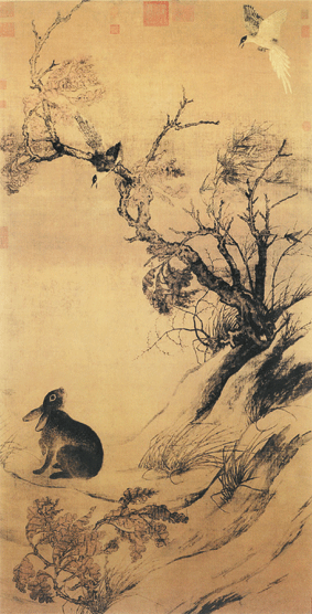 現藏台北故宮博物院。圖中雖然畫的是朔風掃葉、大地凝寒,但著意醒題的,卻是跳躍的生機。
