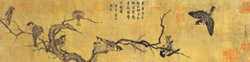 而在崔白繪畫中,絕對看不見第三者的影子,花鳥動態自自在在,絕對無外人圍觀的痕跡,是「裁出天然情一段」的「無人之境」、「山野之氣」。