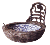 此燈盞利用工藝上特點,使其在整體上具有豐富性。一方面是以瓷器的精緻,另一方面是以錫質在製作上便利,把手上的圖案與瓷器上的青花圖案形成對比。