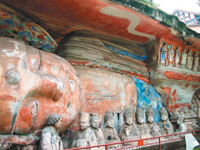 臥佛是「大足石刻」的代表作。臥佛雙目緊閉,神情安詳,是否在殷殷叮嚀囑咐:佛滅度後,弟子們應「以戒為師」做為最後的依歸。