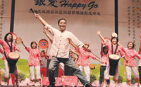 現場還有外丹功教學、舞獅,蘆竹鄉營盤社區發展協會表演葉片口技、手語,壓軸的是佛光山慈悲基金會的「椅子舞」和「頑皮豹舞」,最大歲數九十歲的阿嬤身手矯捷,戴著頑皮豹的頭飾,模樣可愛又慈祥。雖然所有人表演的都是帶動唱、山地與客家歌謠,和簡單的活動操,但評審都說過癮、有新意!慈悲基金會所有的義工也穿著旗袍加入跳舞行列,縣長吳志揚笑說:「大家都是桃園縣的寶。」