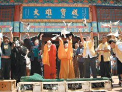 典禮結束,大眾在大雄寶殿外放和平鴿,近百隻和平鴿帶著眾人的祈願與祝福飛向天空,為活動劃下圓滿句點。