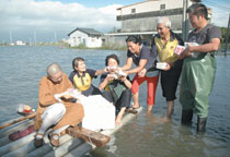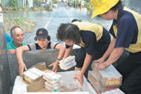 天未亮 蘭陽別院義工捲袖動員 羅智華 |2010.10.24 語音朗讀 1109觀看次 字級 大 中 小 壯圍鄉淹水嚴重,蘭陽別院的法師與佛光會員,坐竹船去發放便當。圖/記者邱麗玥【記者羅智華宜蘭報導】昨天清晨五點多,下過大雨的宜蘭天微亮,佛光山蘭陽別院的大寮(即廚房)已有二十多位法師、佛光人分頭煮飯、炒菜、包便當,且動作非常俐落,為的就是把熱騰騰的四百多個「佛光山三好便當」,盡速送到受困的宜蘭壯圍鄉民手中。蘭陽別院監院妙靜法師表示,梅姬颱風降下豪雨,宜蘭不少地區積水成災,濱海地區的壯圍鄉就因地勢低漥而變成水鄉澤國,不少人的家園淹水超過一公尺高。擔心災民餓肚子,因此,蘭陽別院一早動員佛光人製作四百多個便當送抵災區。負責掌廚的義工方玉蓉表示,為了讓災區民眾可以吃飽,準備綜合炒飯及多種蔬菜混合其中,讓大家吃了營養又平安。 便當備妥,覺根法師帶領佛光人驅車前往壯圍鄉,由於當地積水很深,一般房車進不去,只好改搭鄉公所的大車與橡皮艇或竹筏挨家挨戶送便當。 「在宜蘭住了這麼久,從沒看過這麼嚴重的淹水災情。」壯圍鄉民林錦琳表示,宜蘭這幾天大雨傾盆,一下子「農田變汪洋、道路成河流」,許多人受困家中出不去。陳姓災民表示,在家裡困了好幾天,有的家戶存糧不足,幸好有佛光山愛心便當及時送到,讓他們既感動又感謝。 壯圍鄉鄉長簡文魁表示,這次壯圍鄉幾乎有快三分之二的面積都因大雨侵襲而泡在水中,是近年來最嚴重的一次水災,盼望積水能趕快消退,才能好好整理家園,在風雨中重新站起來。做便當蘭陽別院義工方玉蓉天未亮就開始忙碌。圖/記者邱麗玥送上卡車義工們同心協力將便當送上卡車,送往災區。圖/記者邱麗玥我們收到了在壯圍鄉地區,水淹到膝蓋,民眾騎腳踏車領物資。圖/記者邱麗玥 前一篇文章 佛光人急救災 21人入住仁愛之家 下一篇文章 法師為白雲寺罹難者助念 熱門新聞 01【寬鼎畫語】 看不見的真相2025.11.1002補充纖維、鈣、鎂、鉀 預防多種疾病風險2025.11.1103南天健康日 身心靈課程吸引社區民眾2025.11.1004鳳凰撲台 今明北東雨量恐紫爆 2025.11.1005巴黎佛光人 重陽敬老長幼同樂2025.11.1006COP30揭幕 關注氣候人權與森林2025.11.1007星雲大師全集【經義】佛法滿人間—佛法滿人間 常不輕2025.11.1008星雲大師全集【經義】佛法滿人間—佛法滿人間 悲智雙運2025.11.1009人間佛教聯合總會 推人間佛教國際化2025.11.1010巨型蔬果牆 行銷中台灣2025.11.10 訂閱電子報 台北市 天氣預報 台灣一週天氣預報 相關報導 涵管便道拚10天搶通 馬太鞍溪左岸 將建600公尺長堤芬普尼毒蛋 又爆4萬顆流入市面嘉明湖步道 恢復開放射箭亞錦賽 戴宇軒、李彩綺混雙摘金馬太鞍溪溢流 國軍、機具助清淤司馬庫斯美景 觀光署肯定 作者其他文章佛大跨齡共學 落實食農教育阿里山林鐵森里號 躍登國際QS亞洲大學排名 佛光大學首登榜佛光山大學校長論壇 永續佛學教育佛光人清淤不停歇 用愛與熱食送暖佛光會啟動救災SOP 逾千人馳援光復