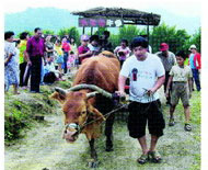【人間社記者彭日鏡新竹報導】新竹縣北埔鄉風景區吸引大批遊客前往攬勝,有業者別出心裁,把農業時期的耕牛拉車載客,果然吸引不少青少年體驗、老年人回味,享受坐牛車的樂趣。