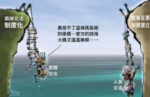 無論兩岸政治關係未來如何發展,但經貿文化與人民交流更頻繁是必然趨勢,但兩岸仍各行其是,沒取得建立制度的共識,如何保障兩岸人民的生命財產安全,不受各種外力因素侵擾,發生意外時能順利處理,建立對等互惠的制度維持交流順暢,是考驗兩岸領導人的重大議題。