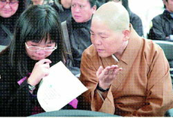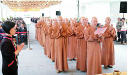 在莊嚴法鼓聲中,祈福超薦法會於昨天上午揭開序幕,由宜蘭佛教會理事長依融法師、常務理事慧省法師與佛光山慧融法師、慧宜法師、慧燈法師、慧功法師等六大師主法,帶領三十位佛光山法師誦經,現場並有來自國際佛光會中華總會、全民護國念佛共修會、蘭陽淨土助念團等兩千位民眾齊聲念誦〈爐香讚〉、〈大悲咒〉、及念誦《地藏經》。