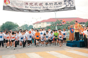隨後,由佛光山都監院院長慧傳法師和國際佛光會世界總會副總會長拿督斯里翁詩杰揮旗,啟動義跑競賽。