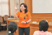 楊麗華誓當永不退票的福慧義工,圖為她教授中醫經絡保健課程,指導選用穴位的重要。圖/人間社記者陳碧雲