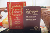 印度前總統卡藍博士送《蒂魯古拉爾》 給愚溪,右書是原文,左書是此次將發表的中文譯本。圖/記者邱麗玥
