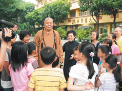 大慈育幼院創辦人星雲大師,常會抽空回大慈探望孩童。圖/大慈育幼院提供