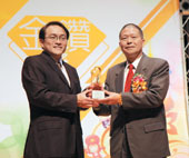 佛光人高啟三(右)榮獲台北市優良義工金鑽獎,由台北市副市長邱文祥頒獎表揚。<br><br>圖/人間社記者鄧淑明