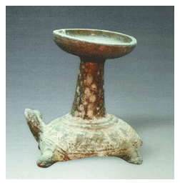 還有一種燈柱式油燈沒有燈盤,而是油壺。