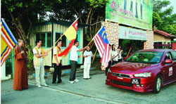 在覺誠法師、國際佛光會馬來西亞協會長宋耀瑞、副會長林文階、秘書長彭九妹及東禪校友分會會長羅子昌一起主持揮旗禮,正式展開「平安汽車尋寶」活動。